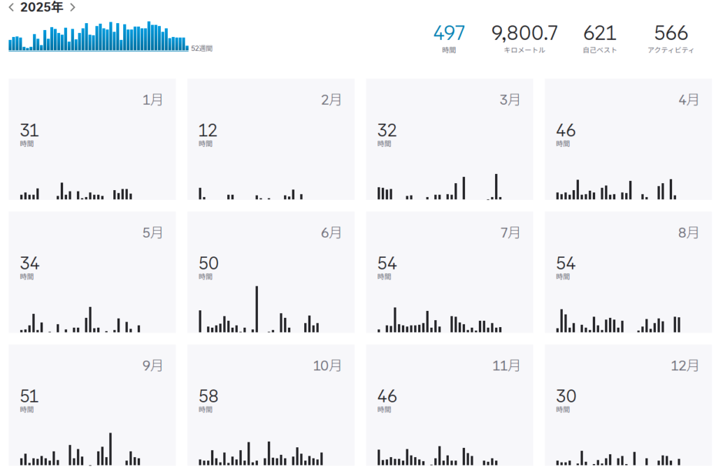 4月以降11月までは個人的に過去一くらいのトレーニング量。いい感じに積み上げれたかと思います。